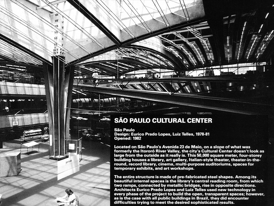 Brazil - Images and Structures, exhibited in Los Angeles, was produced from a selection of works related to architecture and photography previously exhibited in Brazil Projects. Among the exhibited works were productions of Anna Mariani, Papalardo Arnaldo, Carlos A. Moreira, Cristiano Mascaro, Kenji Ota, Leonardo Crescente, Mario Cravo Neto, and Miguel Rio Branco.