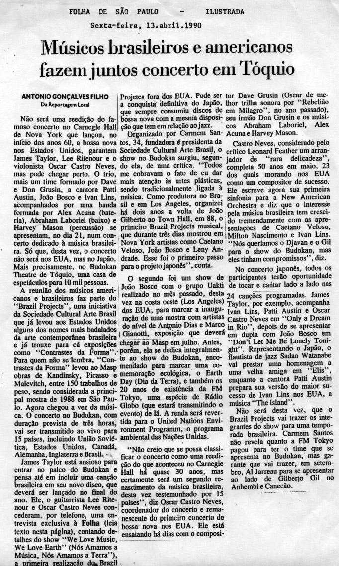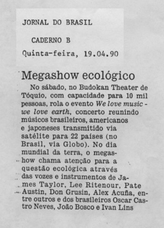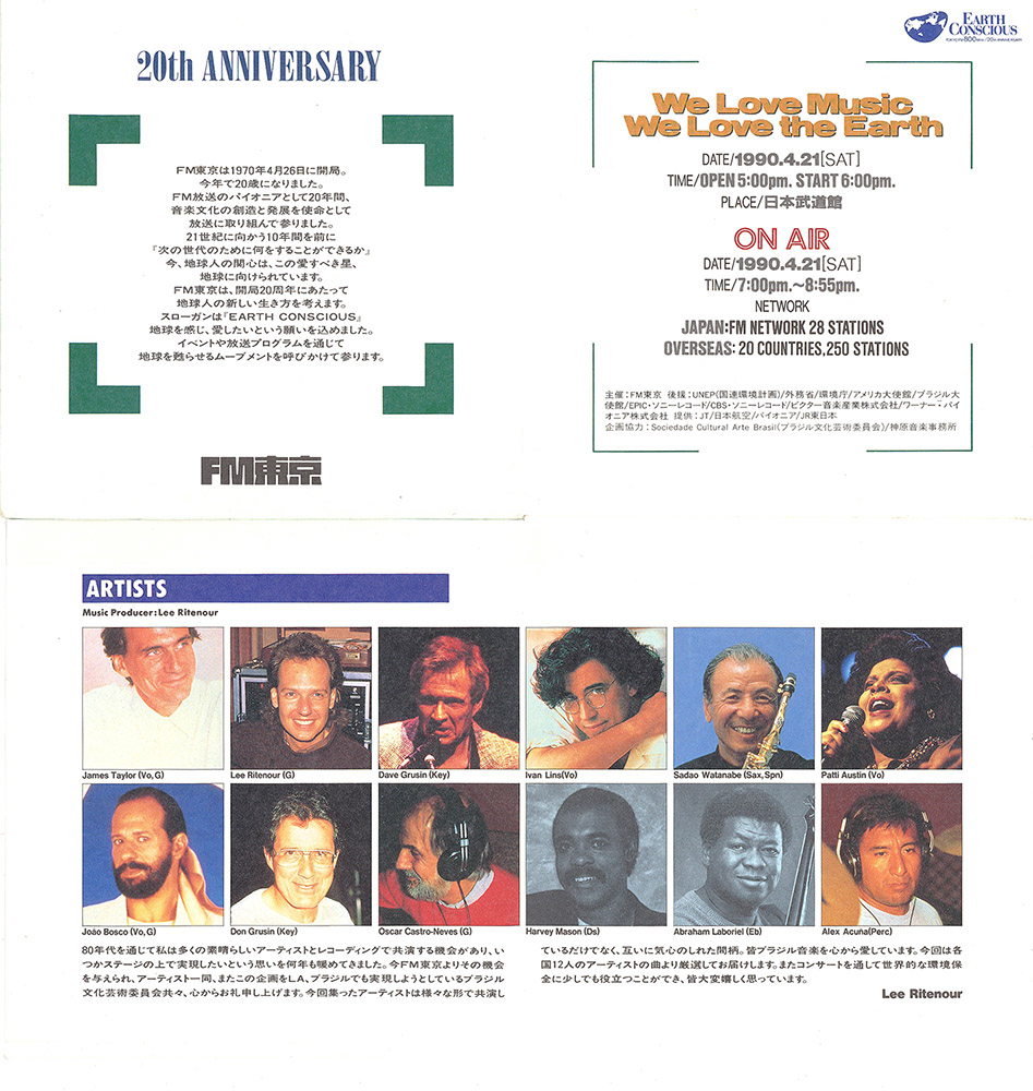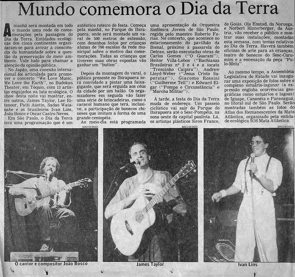 Concert in celebration of Earth Day, with the participation of James Taylor, Dave Grusin, Lee Ritenour, Oscar Castro Neves, Ivan Lins , Sadao Watanabe, Patti Austin, John Bosco, Don Grusin, Harvey Mason, Abraham Laboriel, and Alex Acuna. This show was broadcast via satellite to 22 countries.