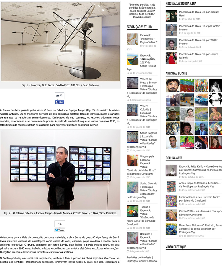 The exhibition brought together works by twelve artists who, in addition to the Portuguese language, share an interest in the search for innovative artistic ideas. Concepts such as history, space and architecture were among the topics addressed in installations, photographs and videos included in the show. In tangent, three musical performances took place at Teatro Paulo Autran in São Paulo. Each night had a focus (Portugal, Africa, and Brazil), featuring a group of musicians and singers as hosts with a number of guests. This interaction of the repertoires of each musical territory sparked unprecedented creations and collaborations. An international band with prominent names accompanied each of the three shows.